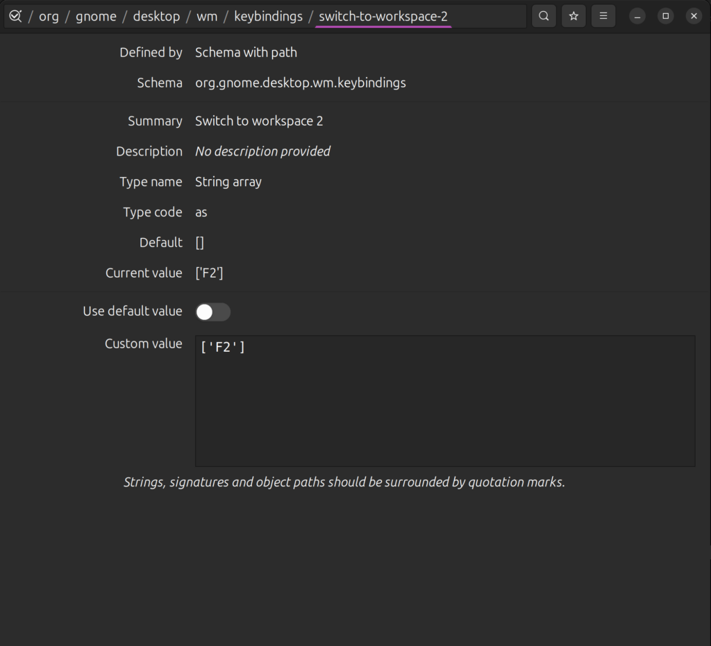 Keyboard shortcuts with dconf